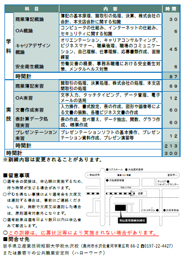 再就職に必要な技能習得を目的とした訓練で、受講料は無料です。